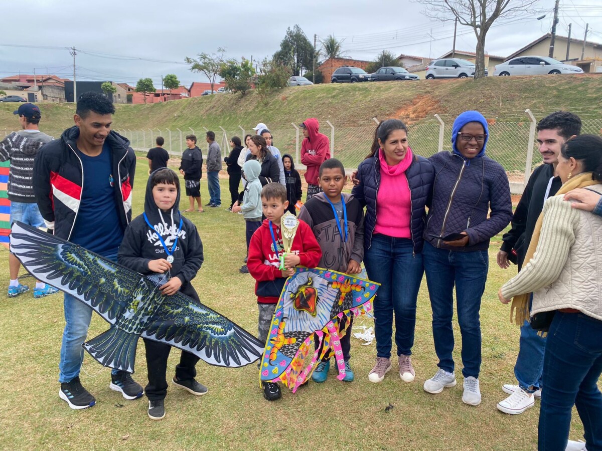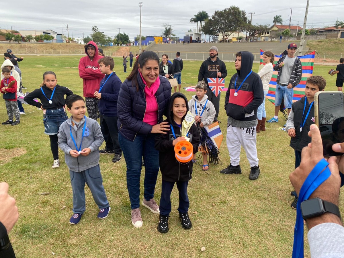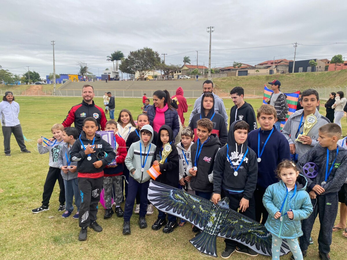 A Prefeitura Municipal, por meio da Secretaria de Desenvolvimento Social, promoveu na manhã de domingo, 27 de agosto, o 2º Campeonato Municipal de Pipas, com quatro categorias em disputa: Maior pipa; Menor pipa; Pipa mais criativa; Voo mais alto; A competição aconteceu no Campo Municipal “Pedro Lala” (São Judas Tadeu) e reuniu cerca de 40 participantes. Mesmo com as baixas temperaturas e o céu nublado, pais, mães e familiares prestigiaram o evento que ao fim, premiou todos os competidores com medalhas pela participação. CONFIRA A LISTA DOS VENCEDORES: Categoria Menor Pipa: 1º Raul Octavio Francelino Pinheiro – 13 anos Categoria Maior Pipa: 1º Henrique Sequenato Pereira – 9 anos Categoria Pipa Mais Criativa: 1º Cauã Ricardo Gandolfo da Silva – 8 anos Categoria Vôo Mais alto: 1º Ian Gabriel Euzebio – 7 anos [gallery columns="6" ids="33701,33702,33703,33704,33705,33706,33707,33708,33709,33710,33711,33712" link="file"]