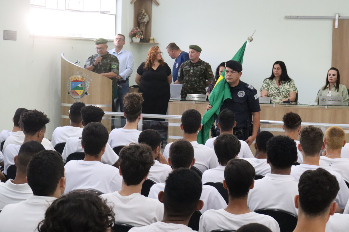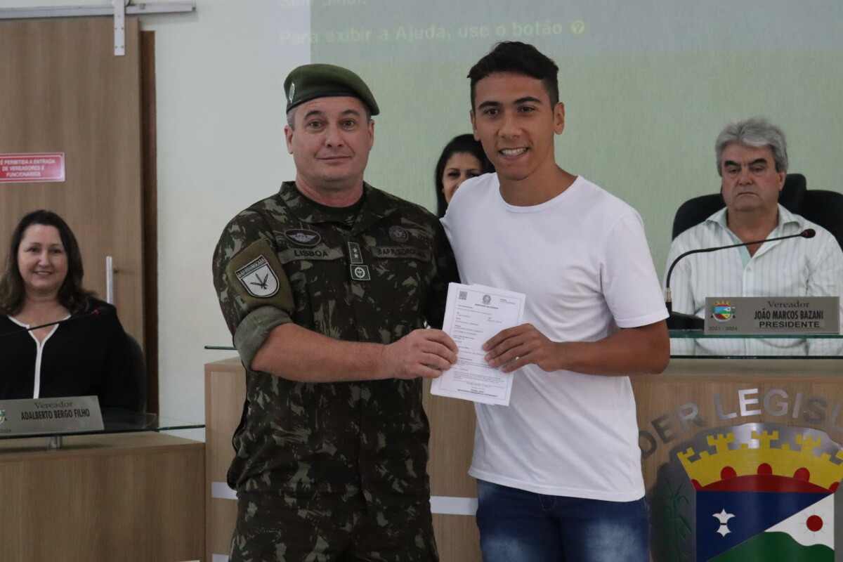 A Junta de Serviço Militar de Santo Antônio de Posse realizou na manhã desta terça-feira, 12 de setembro, no plenário da Câmara Municipal, a solenidade de “Compromisso à Bandeira” e entrega dos Certificados de Dispensa de Incorporação aos possenses que foram dispensados da prestação do Serviço Militar inicial no ano corrente. Cerca de oitenta jovens participaram da atividade prevista no Regulamento da Lei do Serviço Militar em seus artigos 107 e 217, sendo importante momento de transição para a vida adulta, de fortalecimento do espírito cívico e da cidadania. Participaram da cerimônia o prefeito e presidente da Junta de Serviço Militar de Santo Antônio de Posse João Leandro Lolli, a vice-prefeita Ana Brandão, o presidente da Câmara Municipal João Marcos Bazani, o 1º Tenente Paulino Santos e o 1º Tenente Flavio Lisboa Afonso - Delegados Mobilizadores do PRM 02/001 Sorocaba, a Secretária da 143ª Junta de Serviço Militar Vania De Fatima Bernardo De Lima; além das demais autoridades civis e militares presentes, familiares e amigos dos compromitentes. O 1º Tenente PAULINO Delegado Mobilizador do Município de Santo Antônio de Posse, conduziu o juramento à Bandeira dos compromitentes e o 1º Ten LISBOA - Delegado Mobilizador do PRM Sorocaba fez o uso da palavra destacando a finalidade e importância do compromisso assumido pelos jovens, a importância do Certificado que comprova que o jovem está em dia com suas obrigações junto ao Serviço Militar e, que aqueles cujo objetivo é ingressar na carreira militar, podem alcançar êxito por meio dos concursos que são abertos anualmente para ingressar nas Forças Armadas, Exército, Marinha, Aeronáutica e Forças Auxiliares; bem como os que optarem por exercer outras especialidades que nunca se esqueçam do juramento prestado, seja qual for sua área de atuação, busquem sempre o aperfeiçoamento pessoal e profissional, contribuindo para a sociedade brasileira, respeitando os símbolos Nacionais e Instituições, e atuando com dedicação e profissionalismo para o desenvolvimento e engrandecimento da Pátria. [gallery link="file" ids="33792,33793,33794,33781,33780,33777,33776,33779,33778,33782,33784,33785,33788,33795,33796,33797,33798,33799,33800,33801,33802,33803,33804,33805,33806,33807,33808,33809,33810,33811,33812,33814,33815"]