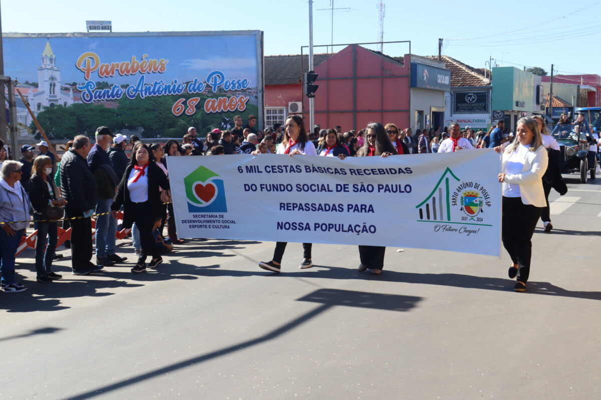 Em celebração aos 69 anos de emancipação político-administrativa de Santo Antônio de Posse, a Prefeitura Municipal, por meio das Secretarias de - Educação e Desenvolvimento Social, promoveu no domingo, 9 de junho, o tradicional Desfile Cívico, que contou com a participação de pessoas de todas as idades e mobilizou instituições e entidades do município com intuito de parabenizar a nossa querida cidade.