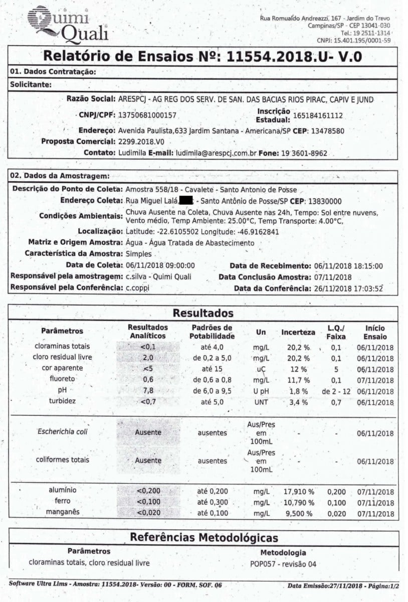Em última coleta realizada pela Agência Reguladora dos Serviços de Saneamento das Bacias dos Rios Piracicaba, Capivari e Jundiaí (Ares PCJ), a qualidade da água distribuída aos possenses foi comprovada como de qualidade, através dos Relatório...