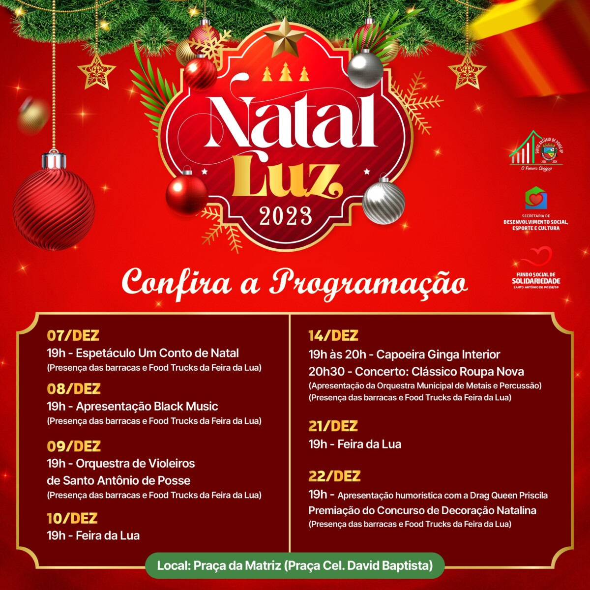 O Fundo Social de Solidariedade, com apoio da Prefeitura de Santo Antônio de Posse e da Secretaria de Desenvolvimento Social, promove na sexta-feira, 15 de dezembro, um Baile de Natal, com apresentação dos Garotos do Baile. O evento acontecerá a ...